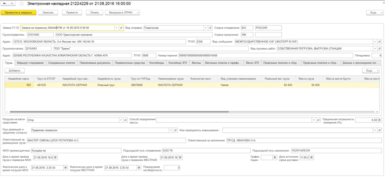 Образец документа «Электронная накладная»